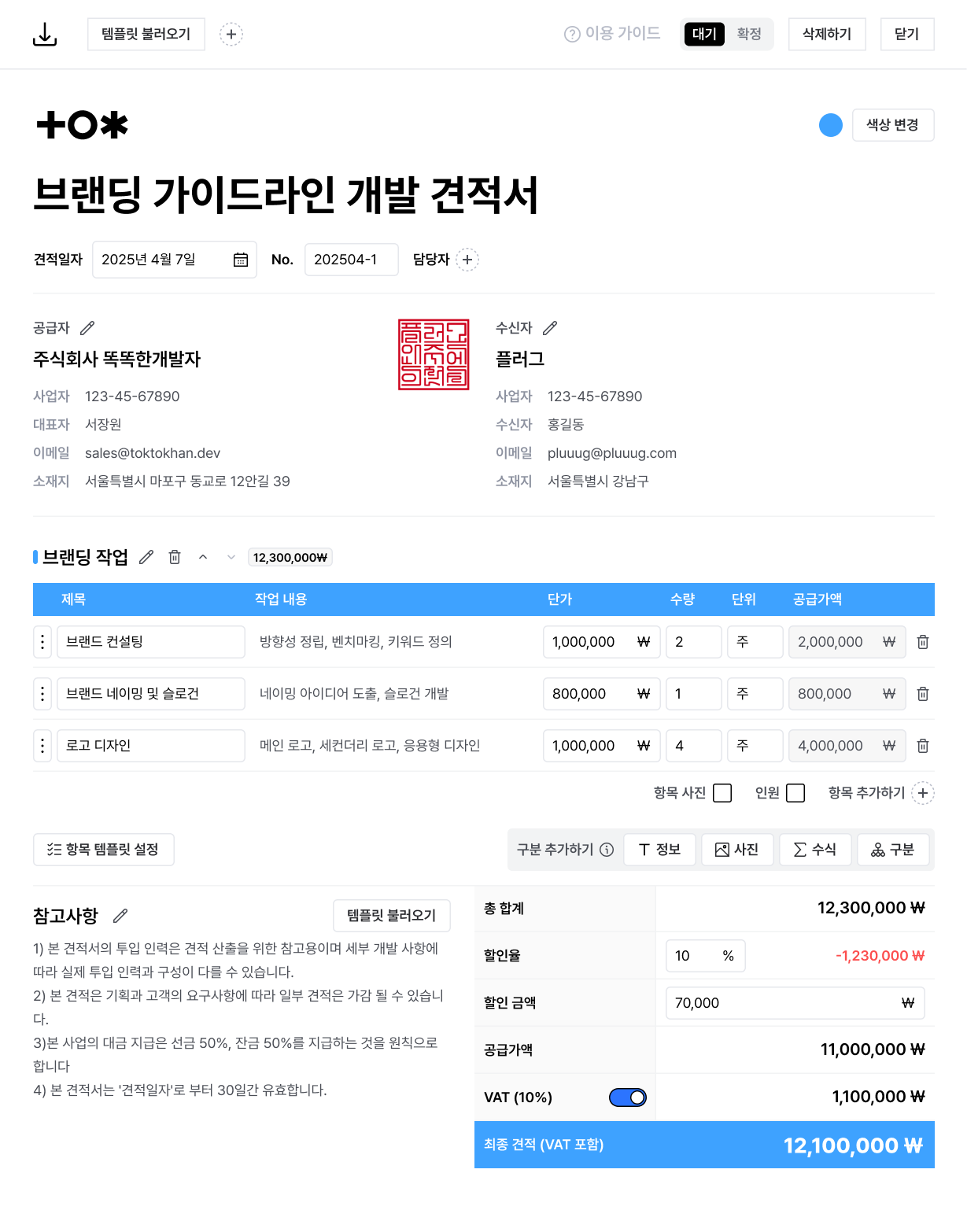 견적서 브랜딩 커스팅