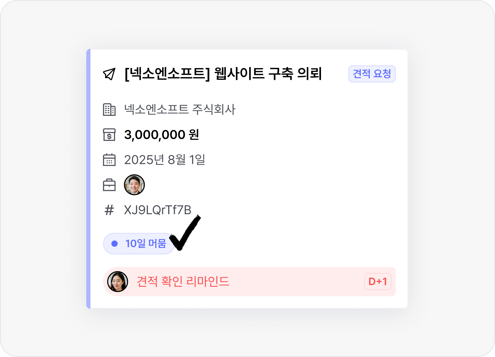 한눈에 확인하는 영업 현황부터, 일부 자동화된 히스토리 관리, 자동 머문기간 체크, 영업 투두리스트 관리까지! 플러그에서 제공되는 기능을 최대한 활용하여 높아지는 영업 성공율을 경험해보세요.